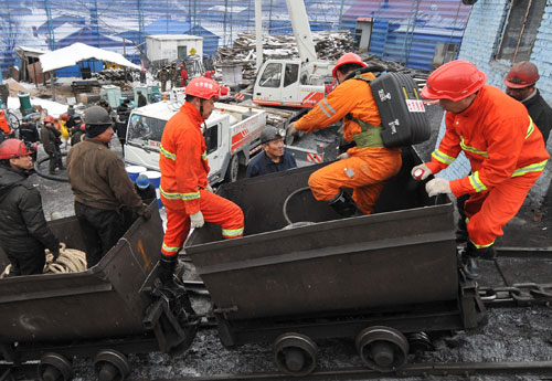 刘文波说,现在左6片94#号区域4名矿工还有生还可能,救援人员从昨天开始打钻,待打通后运送食物和水,目前已打了40米,还有几米就可以打通。因往下打较困难,设备也较落后,昨天夜里紧急从石家庄调来国内最顶尖的打钻设备,11时30分运至现场投入使用。