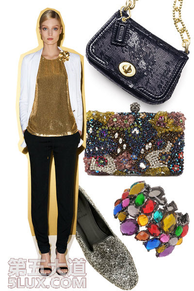 ¡¡¡¡»ªÀöÉÁÒ«µÄ½ðÉ«·þ×°¿É²»Ò»¶¨Ö»³öÏÖÔÚPartyÉÏ£¬½ðÉ«TÐôºÍ¶Ìȹ¾Í·Ç³£ÊʺÏÈÕ³£´îÅä¡£Èç¹û²»ÏëÌ«ÕÅÑ´îÅä°×É«»òºÚÉ«µÄ·þ×°¾ÍÄÜºÜºÃµÄÆ½ºâÊÓ¾õЧ¹û¡£