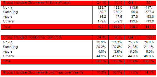¡¡¡¡¸ù¾ÝStrategy AnalyticsµÄÊý¾Ý£¬È¥ÄêÈ«Ä꣬ȫÇòÊÖ»ú³ö»õÁ¿Í¬±ÈÔö³¤14%£¬ÖÁ16ÒÚ²¿¡£È¥ÄêµÚËļ¾¶È£¬Æ»¹ûÔÚÈ«Çò·¶Î§ÄÚµÄiPhone³ö»õÁ¿Îª3700Íò²¿£¬Êг¡·Ý¶îΪ8.3%¡£ÕâÖ÷ÒªÊÜiPhone 4SÃæÊУ¬ÒÔ¼°Æ»¹ûÒÔ²»Í¬¼Û¸ñͬʱÏúÊÛ3¿îiPhoneµÄÍÆ¶¯¡£