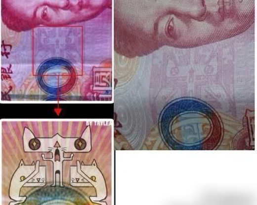 ¡¡¡¡ÔÚÍøÓÑ·¢²¼µÄÕâ×éͼƬÖУ¬Ò»·ùÊÇÒ»ÕŰÙÔªÖ½±ÒµÄ¾Ö²¿£¬±»ÓúìÉ«·½¿éȦÁËÆðÀ´£¬¶øÔÚÆäÏ·½£¬ÊÇÒ»¸öÍøÓÑ»µÄͼ°¸£¬Ò»¸öÈýֻèµÄ×éºÏͼ°¸£¬Ò»Ö»Ã¨Õ¾×Å£¬ÁíÍâÁ½Ö»Ã¨¹ò×Å×öĤ°Ý×´£¬¡°ÈËÃñ±ÒÀï²Ø×Å裬Äã·¢ÏÖÁËÂ𣿡±