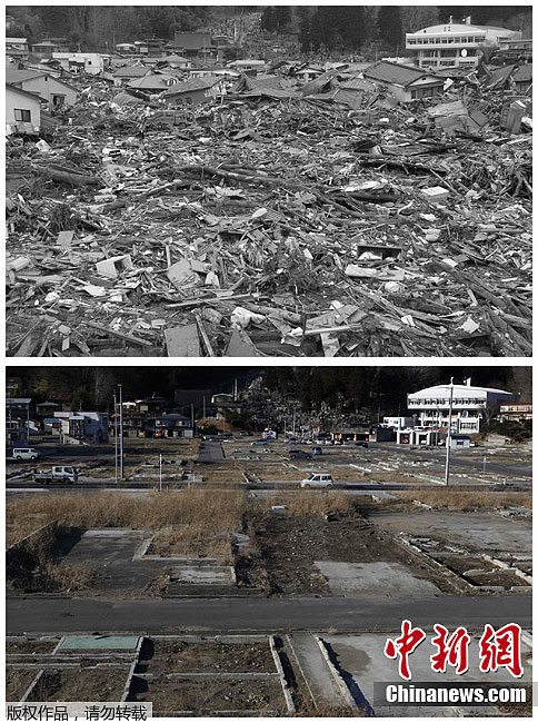 ¡¡¡¡2011Äê3ÔÂ11ÈÕÅÄÉãµÄÈÕ±¾ÑÒÊÖÏØ¹¬¹Å£¨ÉÏ£©ºÍ2012Äê2ÔÂ17ÈÕͬһ½Ç¶ÈͬһµØµãÅÄÉãµÄÈÕ±¾ÑÒÊÖÏØ¹¬¹Å£¨Ï£©¡£