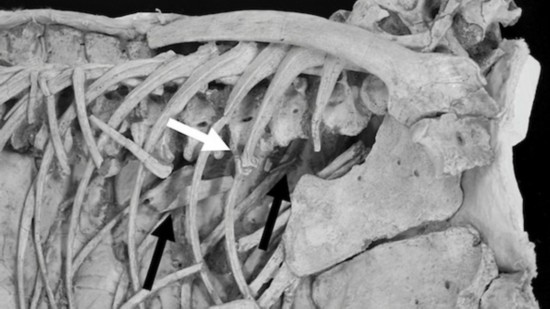 ¡¡¡¡Õâ¾ß³ÛÁú»¯Ê¯ÓÚ1994Äê³öÍÁÓÚ¸ê±ÚɳĮ¡£³ÛÁúµÄÐØÀªÀïºÕÈ»ÊÇÒ»¶Î7.5ÀåÃ×µÄÒíÁú¹Ç÷À£¬¾Í´¦ÔÚθµÄλÖᣡ°ÒíÁú¹Ç÷À±íÃæ¹â»¬£¬±£´æÁ¼ºÃ£¬Ã»ÓÐθËḯʴµÄºÛ¼£¡£Òò´Ë³ÛÁúÊÇÔÚ³ÔÁËÒ»¶ÙÒíÁú´ó²Íºó£¬²»¶à¾Ã±ãÃü¹éÎ÷Ìì¡£¡±Hone½âÊÍ˵¡£¡°¾¹ýÎÒÃǽøÒ»²½Ñо¿£¬·¢ÏÖÕâÖ»³ÛÁúÀ߹Ǵ¦»¹ÓÐÉÐδÍêÈ«ÓúºÏµÄÉ˿ڣ¬ÕâʹÕû¸öʼþ¸ü¼ÓÆËË·ÃÔÀë¡£¡±
