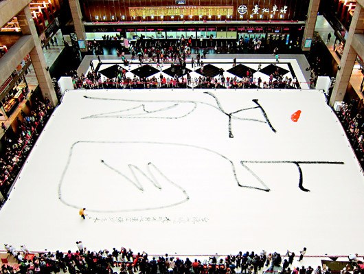 ¡¡¡¡ÖÐÐÂÍø4ÔÂ1ÈÕµç ¾Ý̨Íå¡¶ÁªºÏ±¨¡·±¨µÀ£¬Ì¨±±³µÕ¾´óÌü×òÌìÆÌÉÏÔ¼300ƺ(1ƺ = 3.305785 ©O)ÌØÖÆÃÞ²¼£¬È˳ơ°µØÇòìøÕß¡±µÄÊé·¨¼ÒºéÆôáÔ³×ų¬¹ý6¹«½ïµÄ´óë±Ê£¬Ê±¶ø´Ï¢£¬Ê±¶ø¿ìËÙÒÆ¶¯±íÏÖÁ¦µÀ£¬Íê³É¾Þ´ó¡°Áú¡±×Ö£¬²»½öÍ»ÆÆÌ¨Íå¼Í¼£¬Ò²ÎªµÚ°Ë½ìºº×ÖÎÄ»¯½Ú½Ò¿ªÐòÄ»¡£