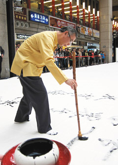 ¡¡¡¡µØÇòìøÕß¡¢Êé·¨¼ÒºéÆôáÔ×òÌìÔŲ́±±³µÕ¾´óÌü³¤38Ãס¢¿í27Ã×µÄÃÞ²¼ÉÏ£¬Ð´Ï´ó´óµÄ¡°Áú¡±×Ö£¬ÎªÌ¨±±Êкº×ÖÎÄ»¯½Ú½Ò¿ªÐòÄ»¡£Í¼Æ¬À´Ô´£ºÌ¨Íå¡¶ÁªºÏ±¨¡·