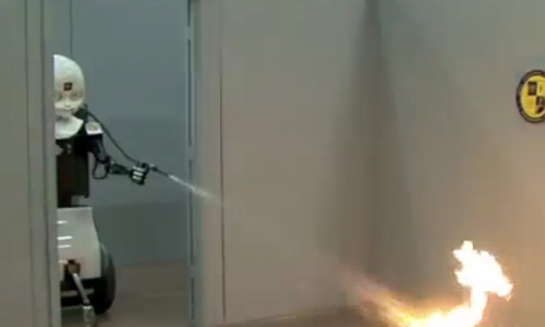 »úÆ÷ÈËÏû·ÀÔ±ÕýÔÚÃð»ð(ÊÓÆµ½ØÍ¼)