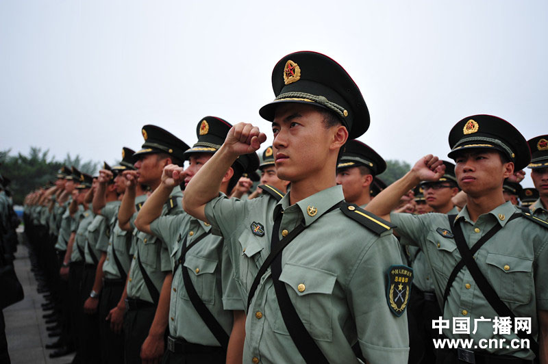 ¡¡¡¡ÔÚ¿¹Õ½¹ÝÃÅǰ£¬ÏÊ»¨Î§³ÉµÄ¡°ÆßÆß¡°×ÖÑù¸ñÍâÐÑÄ¿£¬ËƺõÔÚÌáʾÿһλ²Î¹ÛÕß²»ÒªÍü¼ÇÄǶÎÇüÈèµÄÀúÊ·¡£¹ã³¡ÉÏ£¬À´×Ô×°¼×±ø¹¤³ÌѧԺµÄ½â·Å¾ü±ÏÒµ°àѧԱÃÇ¾ÙÆðÓÒÈ£¬×¯ÑÏÐûÊÄ£º