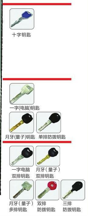 开锁达人点评:B级是较安全的等级,从钥匙上看是双面双排弹子槽,这样的锁如果有工具,熟练工要10分钟,甚至10分钟以上时间才能开启。钥匙主要包括一字电脑钥匙、单排防拨钥匙、单排月牙钥匙。