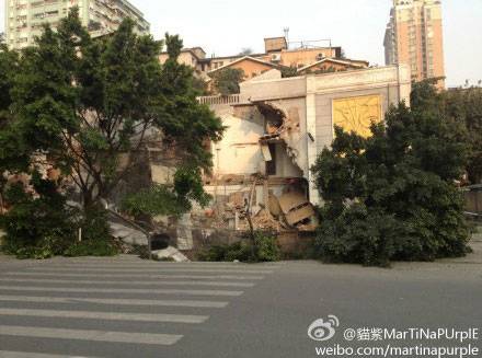 从网友提供的图片看,康王路和浆木栏路交界的地陷,距离地铁文化公园站施工现场很近。