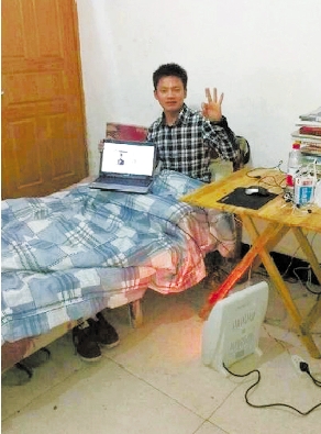 张宏明还在微博上贴出一张与早前美联社播发的照片类似的照片。照片显示,他居住在一间狭窄的屋子里,室内陈设极其简陋,主要家具仅有一床一桌一椅,亦无空调,在寒冬里只能以电暖器取暖。照片中的张较为年轻,着衬衫和牛仔裤,与一般青年无异。
