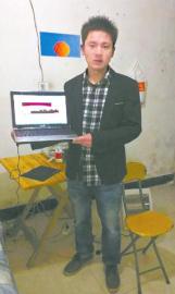 张洪铭展示自己的笔记本电脑和微博。