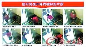 蓝可儿在升降机外站了大约30秒,双手抱头又进入升降机,再度将全部楼层的按钮按一次。之后蓝可儿又走出升降机外,手舞足蹈地似乎在叫嚷,随后又像数数字般折自己的手指。大约15秒后,蓝可儿便离开升降机监察录像机的范围,过程中升降机门完全没有关上过。