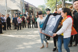 本报渭南讯 昨日,山东聊城直升机坠落遇难烈士张文涛的骨灰被送回老家临渭区闫村镇北韩村,张文涛的战友、亲属以及北韩村数百名村民迎接烈士骨灰回家。