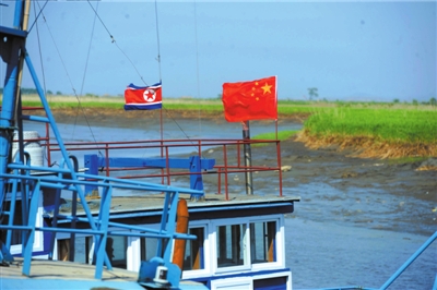 5月23日,京华时报记者在东港市的多个码头看到,有的渔船只挂中国国旗,有的则同时插上朝鲜国旗。据介绍,挂朝鲜旗的即属“帮艇”,船主持有专门的许可证,可以跨越东经124度,进入朝鲜海域的特定区域作业,在遇到巡逻艇盘查时出示证件即过关。