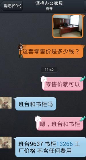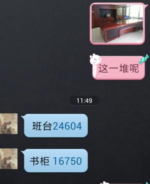 钟剑锋:对对,一看我就知道了,因为我们每个型号都是唯一的,那个班台好像是九千多块钱,书柜1万3千多,沙发也就是1万多左右,这是工厂价格。