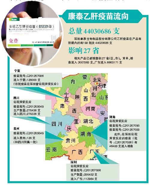 此外,在深圳出现异常反应的疫苗(批号:C201207086)有46488支流入湖南