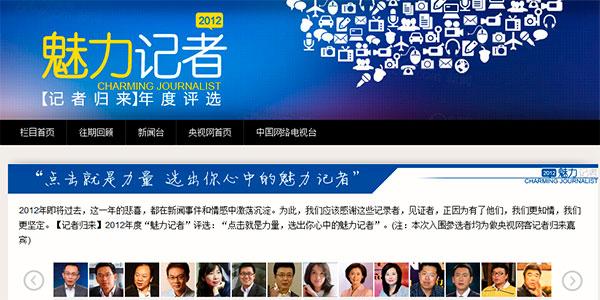½ØÖ¹ÖÁ1ÔÂ31ÈÕ£¬ÓÉÍøÓÑÔÚÑëÊÓÍø¡¶¼ÇÕß¹éÀ´¡·À¸Ä¿²¥³öµÄ¼Î±öÖÐ,ͶƱѡ³öµÄ¡¾¼ÇÕß¹éÀ´¡¿¡°2012Äê¶È÷ÈÁ¦¼ÇÕß¡±»î¶¯ÂäÏÂá¡Ä»£¬ËûÃÇÊÇ£ºÕÅȪÁé¡¢ºÎÇï¡¢ÁõÍòÓÀ¡¢½¯ê¿½Ý¡¢³ÂÏþ骡¢¿µÎÄÌΡ¢Ê¦ÓÀ¸Õ¡¢Íõ¿ËÇÚ¡¢½¹²¨¡¢·ëÑ©ËÉ¡¢ÇñÓÀá¿¡¢Íõ¹Ú¡£