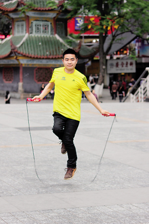 熊军刻苦训练终于得到收获。他18岁的一天,左脚突然能够跳起来,父母得知消息后刹那间热泪盈眶。从那以后,熊军开始练习单腿跳绳。他告诉记者,以前最多每分钟可以跳300个。2012年,在温州打工的他第一次报名参加了当地万人万米健身跑活动,此后他便爱上了马拉松这项运动。