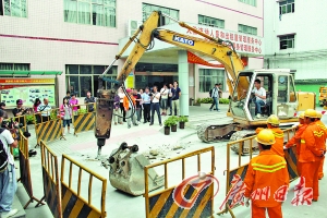 昨日,警方对增城大墩村盗水点进行开挖取证。记者邵权达摄