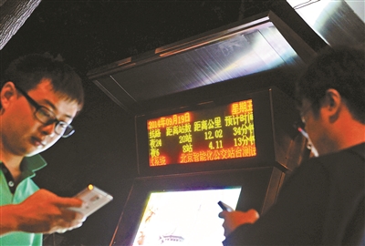 前天23点左右,北京青年报记者在东大桥路口北的公交站台看到,“智能化公交站台测试系统”的显示屏上可以清楚地看到,夜6路距离东大桥路口北站还有6站,预计还有12分钟到达。12分钟后,夜6路准点抵达东大桥路口北站。