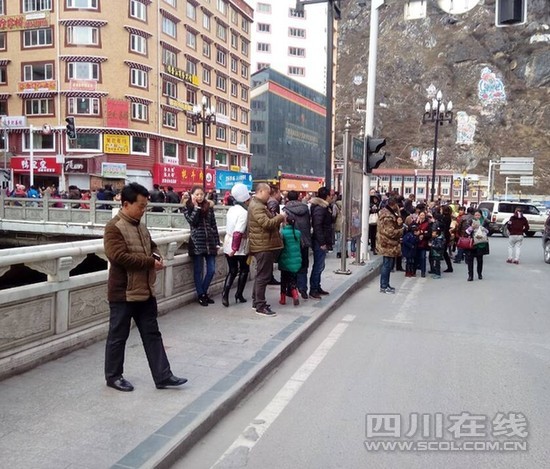 目前康定城内,大多市民们跑到街边“避难”。
