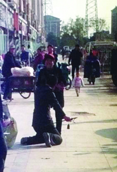 朱先生说,当时老人听后并没有马上离开,城管于是就把老太太的秤拿在手里,“他的意思应该是让老太太赶快走。老太太一看秤被拿了,当时就跪了下来,说‘我求你,你把秤给我’。”