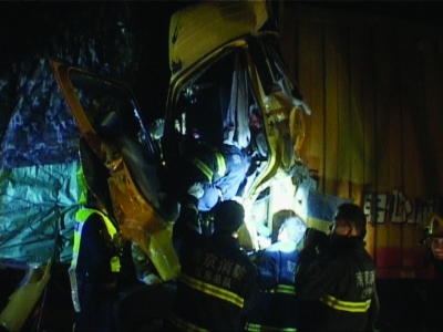 接报赶到的消防动用了专业救援设备,救援人员花了40分钟才将后车司机救出并送医院抢救,好在司机并无生命危险。根据现场判断,民警告诉记者,后车司机可能是疲劳驾驶引发了事故,具体情况还需调查。