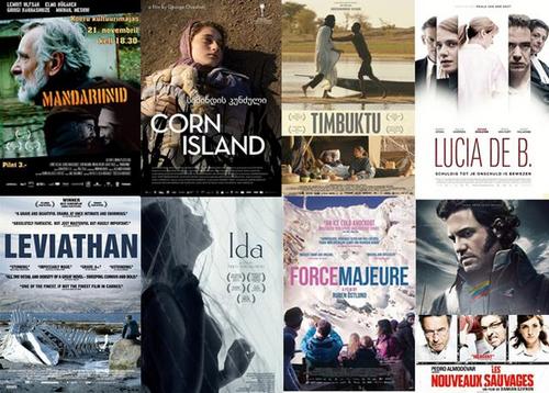 今年奥斯卡外语片奖共收到83个国家/地区选送的影片,由美国电影艺术与科学学院的成员投票选出六部,再由外语片奖执行委员会从剩下的影片中选出另外三部,以避免遗珠之憾。此次入围的影片包括阿根廷的《荒野故事》、爱沙尼亚的《红橘》、格鲁吉亚的《庄稼之岛》、毛里塔尼亚的《廷巴克图》、荷兰的《指控》、波兰的《修女艾达》、俄罗斯的《利维坦》、瑞典的《游客》、委内瑞拉的《解放者》等。华语电影方面,中国大陆选送、由法国导演费利普·弥勒执导的合拍片《夜莺》,香港选送的 《黄金时代》以及台湾选送的《冰毒》都无缘下一轮票选,而斩获今年戛纳电影节金棕榈大奖的土耳其电影《冬眠》、法国著名导演达内兄弟的《两天一夜》(在线观看)、以及在戛纳电影节上备受好评的青年导演哈维尔·多兰的《妈咪》都意外出局。
