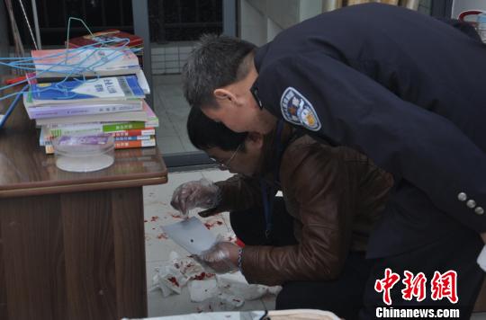 图为河源警方在案发现场取证、弹道分析等一系列侦查 廖志卓 摄