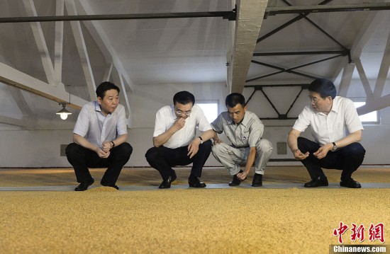 7月4日,李克强总理在中央储备粮株洲直属库考察时,抓起一把存粮搓了搓,又咬开一颗谷粒品尝后问道:“这粮食存了两三年了吧?”工作人员点头称是。