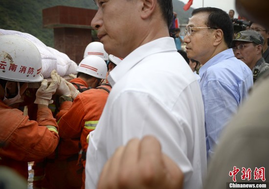 8月4日,李克强总理在云南鲁甸地震震中龙头山镇,现场指挥救灾工作。几名战士抬着刚刚获救的伤员匆匆走来,李克强迅速指挥在场人员侧身退后,为伤员“开辟”出一条快速通道。