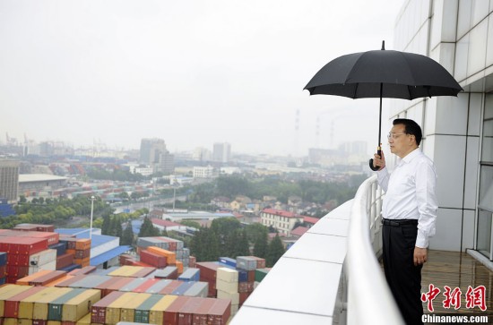 9月19日,李克强总理在上海自贸区挂牌一周年前夕,在外高桥物流中心考察自贸区新貌。