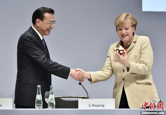 10月10日,中德经济技术论坛上,李克强总理将一只精巧的鲁班锁送给德国总理默克尔。他说,这是中国天津中德职业技术学院学生的作品,寓意中德制造业深度融合。