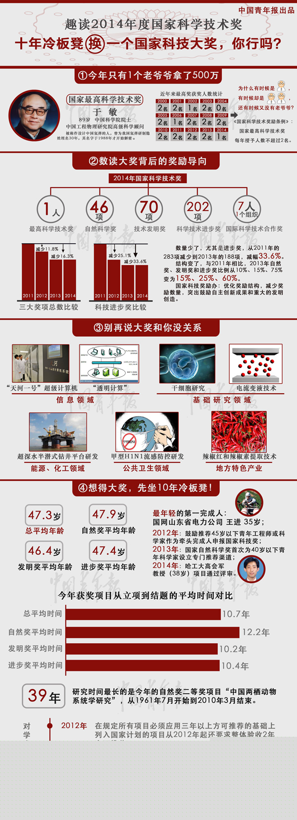 中青在线北京1月9日电(中国青年报·中青在线记者邱晨辉 诸葛亚寒)今天,国家科学技术奖励“大榜”揭晓,89岁高龄的核物理学家、中国科学院院士、中国工程物理研究院高级科学顾问于敏捧得象征科技终身荣誉的2014年度国家最高科学技术奖。