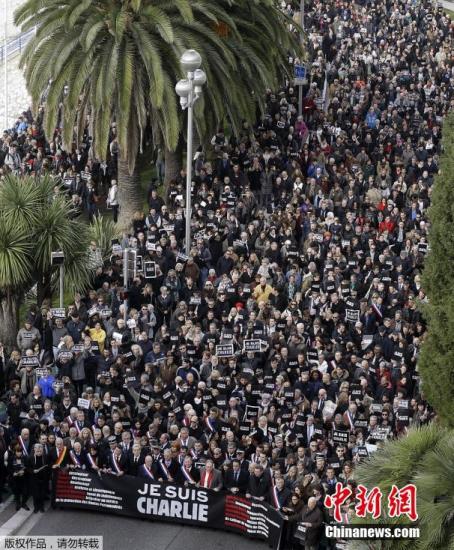 法国经过3天的多起死亡枪击事件后,1月10日法国各地举行集会游行,总计大约有70万人参加。