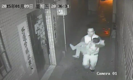 次日凌晨1时,调取周围监控视频的禅城警方终于有所发现:从小飞失踪的巷口内约20米的一个监控里可以看到,当晚8时36分30秒,一名男子横抱小飞,左手捂着小飞的嘴小跑经过,小飞双脚还在不断挣扎。通过监控视频看到,男子约30来岁,穿黑色球鞋、白色西裤和白上衣。不久,掳走小飞的视频截图(见上图)立刻在网上被转发。