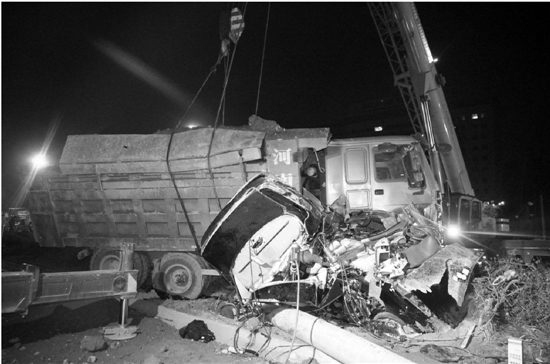 “卡车是超载的,没有酒驾的行为。”据知情人士透露,从城里往廿三里的方向,两辆事故车先是刮擦,之后一起失控冲向绿化带,没想到正好绿化带上有一根电线杆,大货车和电线杆把轿车夹在中间。