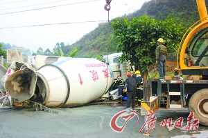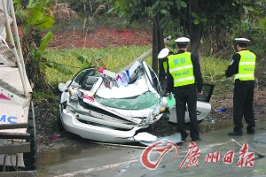 昨日,记者接到市民报料称,17时许,位于神湾镇神湾大桥附近,一辆中山牌的混凝土搅拌车与一辆警车相撞,警车被搅拌车压成“饼”。