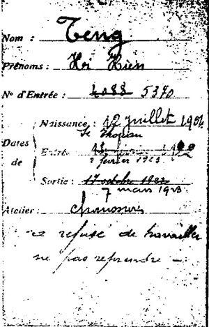 邓小平在哈金森橡胶工厂打工时的档案卡。(资料图)