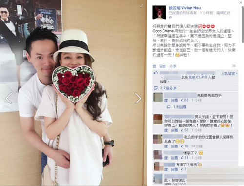 “Coco Chanel用她的一生告诉全世界女人的道理~‘所谓幸福握在手中,莫不是因为你是独立、坚强、感性、自我成就的女人’”徐若瑄与老公情人节晒闪照,要粉丝们无论单身或有伴,都不要失去自我,努力不断进步创造、肯定自己,做一个有魅力的人,快乐的过每一天,PO文充满知性与感性美。