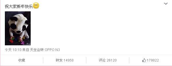 人民网北京2月18日电 (温璐)大年三十,杨幂终于晒出一张小糯米的“靓照”,为大家送上来新春祝福:“祝大家新年快乐”。照片中,小糯米端在地上专注地正在玩玩具,头戴大大的熊猫帽子把脸都遮住了。这让一直盼着见“小糯米”真容的网友焦急的调侃:“想看糯米正脸照”“糯米真可爱 没看到脸这么任性 ”“糯米秒变熊猫”。