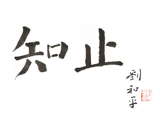 任何一个国家的今天都来自昨天,历史是现实的根源。对给党员干部题写寄语,刘和平谨慎而自谦,反复思量,最后决定用“知止”二字。语出《礼记大学》:“知止而后有定,定而后能静。”即知道应该达到的境界才能够使自己志向坚定。老子《道德经》亦有“故知足不辱,知止不殆,可以长久”,即懂得满足就不会受到屈辱,懂得适可而止就不会遇到危险,这样才可以长久的平安。他说,做人做事任何时候都一定要知止。这是古人的告诫,更是今天的箴言。(景延安)