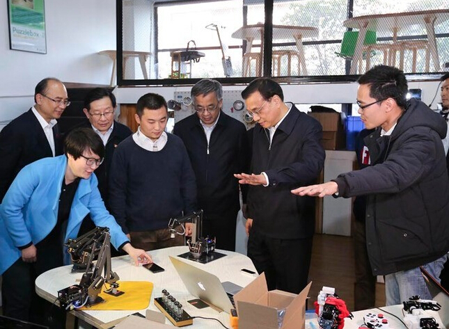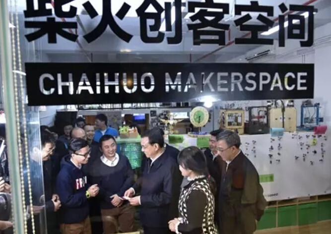 2015年1月4日下午,李克强拐了许多道弯儿,走进了深圳柴火创客空间。