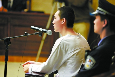 身形高挑瘦弱的潘某被法警带上法庭。他身着白衣,沉郁的脸上还带着些许书生气,整个庭审中,他细细地回答法官和公诉人的提问,偶尔将头扭向坐在公诉人旁边死去男童的父母。