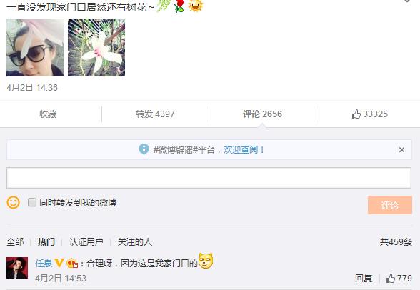看到照片后,有网友赞叹:“花美人更美”、“依然美美哒”。而任泉则留言“合理呀,因为这是我家门口的”,使网友不禁问道:“你们为什么还不在一起?”还有网友猜测:“任泉家门口的花,是默认的意思吗?”