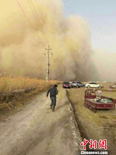 此间4月2日傍晚7点多,突然袭来了强沙尘暴,风头景象如海啸般翻涌、如一万头巨猛野兽奔腾而来,刹那间天昏地暗,十米开外看不清踪影。家住新疆生产建设兵团第一师八团的郭长征说:“沙尘暴袭来时,我们已经下班回到家里,所幸八团大宗农作物尚未开播,否则,损失难以估量。”