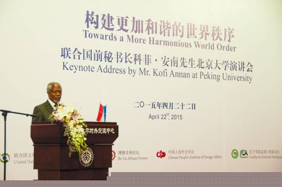 4月22日,联合国前秘书长科菲·安南先生在北京大学发表演讲。实习生 周智宇/摄