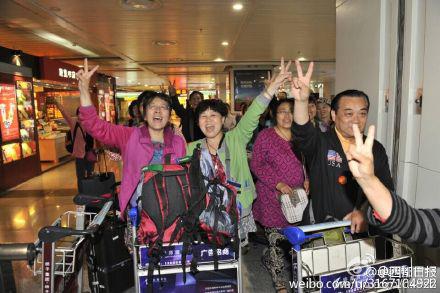 经历尼泊尔强震归来的中国游客。@四川日报微博截图