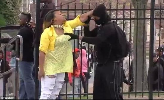【环球时报特约记者 王晓雄】在美国巴尔的摩27日发生的骚乱中,一幕“家庭剧”引发国际舆论热议——一名母亲在街头掌掴参加示威的儿子,让其跟她回家(如图)。这名“掌掴妈妈”随后迅速在美国走红,被称为“英雄”,她事后接受采访时表示,不希望儿子使用暴力维护所谓的公平正义,她那么做是为了保护他。