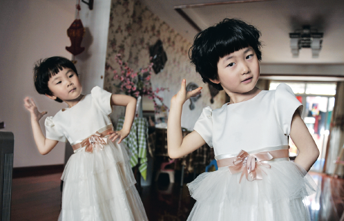 这时,旁边的两个小家伙立刻打断了妈妈的演唱:“妈妈你唱错了,应该唱‘一只没有眼睛,一只没有尾巴’。”看着两个穿着白纱裙的女儿,盛海琳笑了:“我们一家四口都是属虎的,你们就是两只小老虎嘛,而且是两只马上就要5岁的小老虎。”
