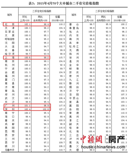 中新网5月18日电 今日,国家统计局发布了4月份70个大中城市住宅销售价格变动情况,数据显示,4月份70个大中城市新建商品住宅成交继续回升,部分城市房价环比略有上涨。4月份70个大中城市新建商品住宅和二手住宅价格环比上涨的城市分别有18个和28个,分别比上月增加了6个和16个;持平和下降的城市个数均有所减少。初步测算,4月份70个大中城市新建商品住宅价格环比综合平均上涨0.3%。值得注意的是,北京、上海、广州、深圳四个一线城市无论是新房还是二手房,均全线上涨。